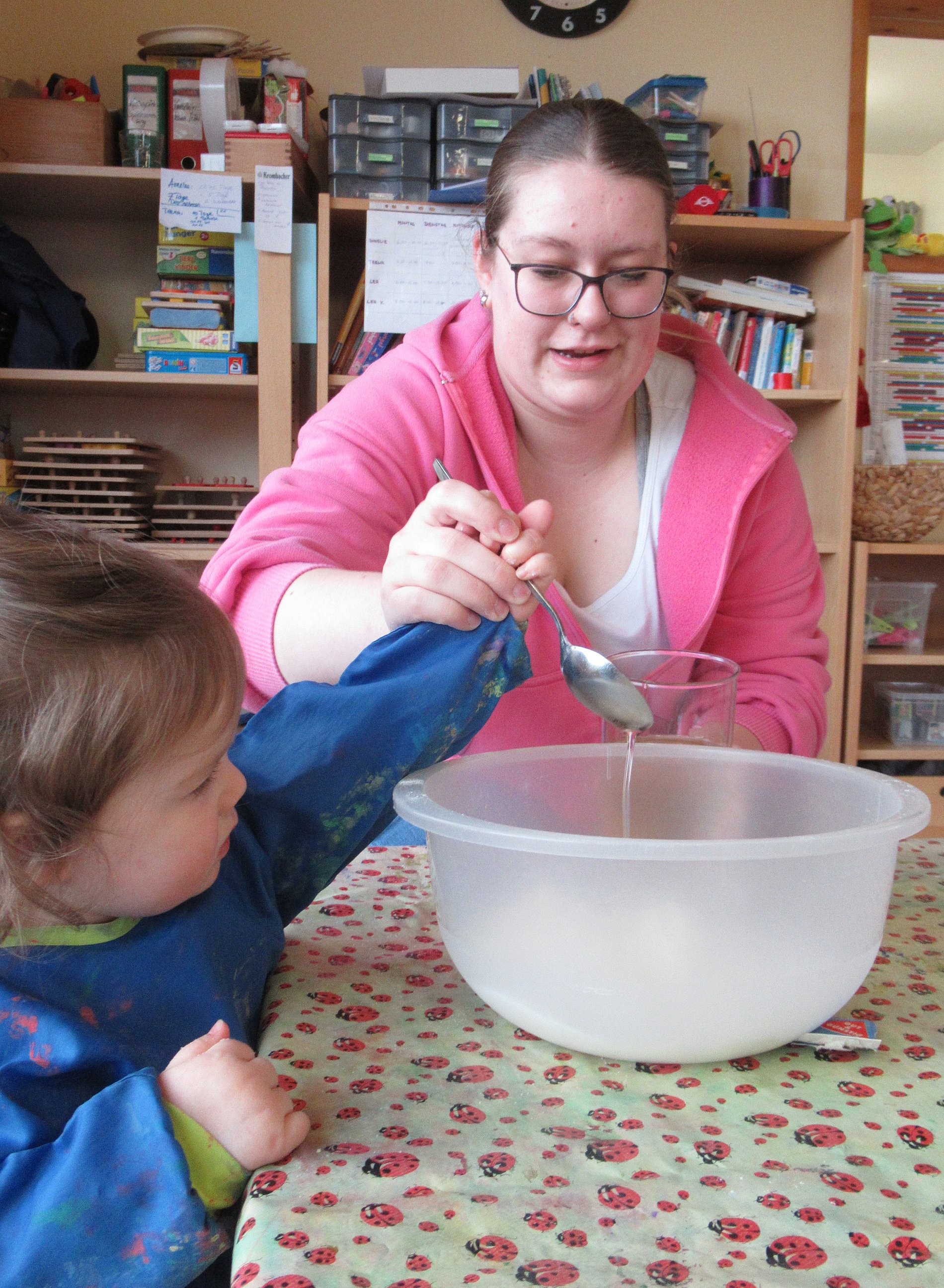 Das Projekt „Kunterbunte Knete“ hat ein Ende gefunden. Die Kinder zeigten viel Interesse daran und machten super mit. Zu Beginn des Projektes haben wir mit einem Krabbelkäfer-Kreis gestartet. Gemeinsam haben wir gesungen, wodurch unsere Hand in den Fokus gekommen ist. An dem darauffolgenden Tag ging es auch los! Wir packten alle gemeinsam die Zutaten in die Schüssel und fingen an zu kneten. Es hat super viel Spaß gemacht. In den nächsten Tagen haben wir uns der Knete gewidmet und noch passende Lieder dazu gesungen. Zum Abschluss packten wir die Knete gemeinsam ein, und die Kinder durften ihre Knete mit nach Hause nehmen.