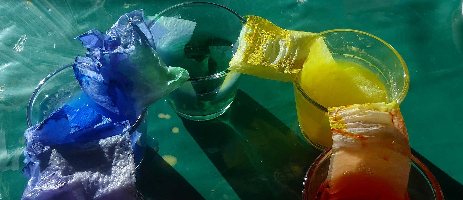 Außerdem haben wir uns mit den Mischfarben beschäftigt. Wir haben selbst aus den drei Grundfarben neue Farben gemischt, sowie auch hier verschiedene Techniken und Experimente zum Farbenmischen kennengelernt und durchgeführt.