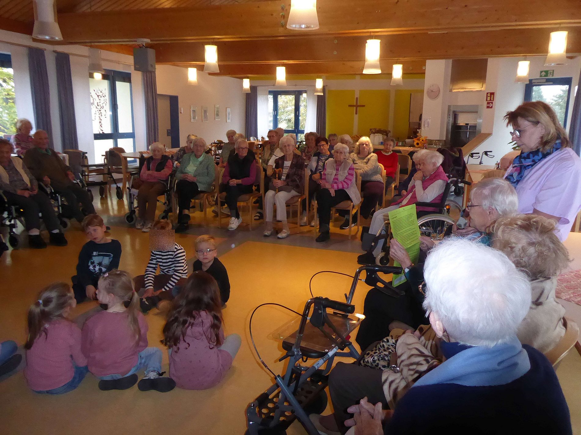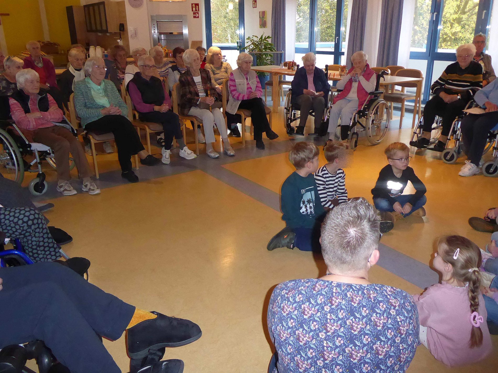 Am 11.11.2024 waren wir zur St. Martinsfeier im Altenheim eingeladen. Als wir dort ankamen, wurden wir von vielen strahlenden Bewohnern empfangen. Wir zogen mit unseren Laternen und dem Lied „Ich geh´mit meiner Laterne“ in den großen Speisesaal ein.