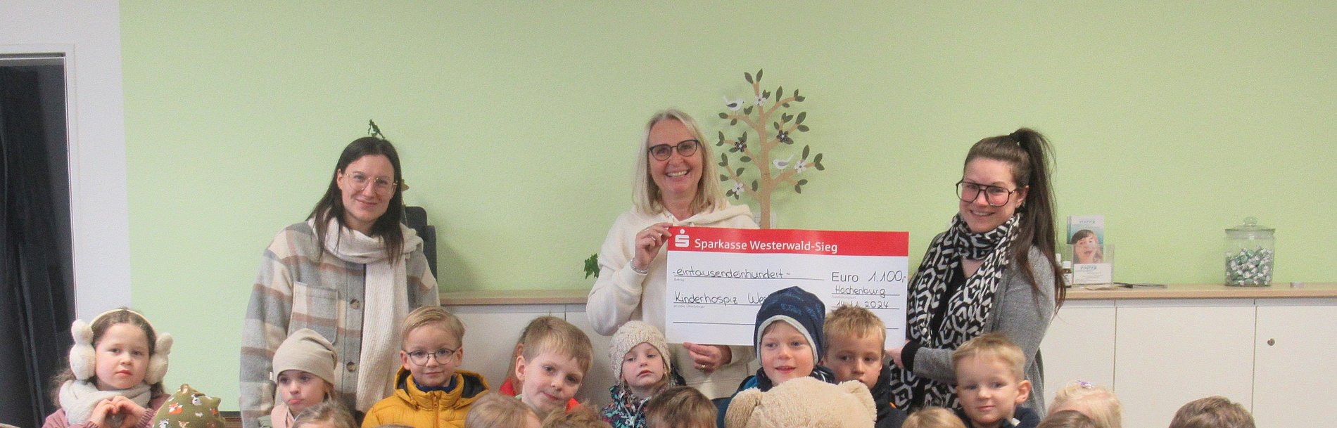 Dazu sind die Kinder und die Fachkräfte am 14. November losgestartet und haben einen langen Fußweg in die Stadt unternommen. Schließlich sind sie im Büro des Kinderhospiz gelandet. Dort wurde der Spendencheck an zwei Mitarbeiterinnen des Hospiz überreicht und die BesucherInnen konnten ein wenig über deren Arbeit erfahren. Die Verantwortlichen haben sich riesig gefreut und erklärt, was genau mit diesem Geld gemacht wird. Durch die Hilfe der Kinder und mit der Unterstützung unserer Elternschaft kann nun Familien mit erkrankten Kinder geholfen werden.