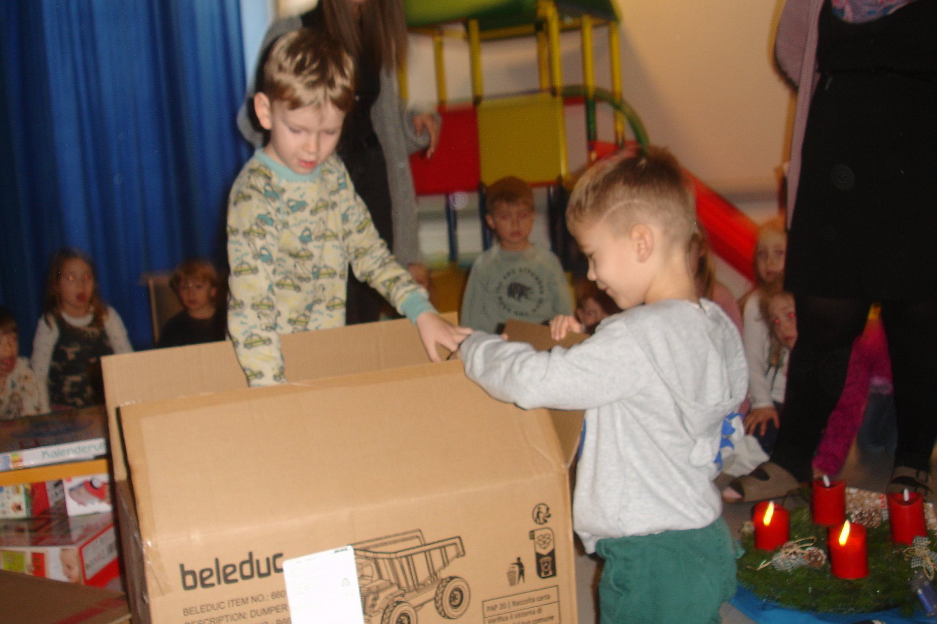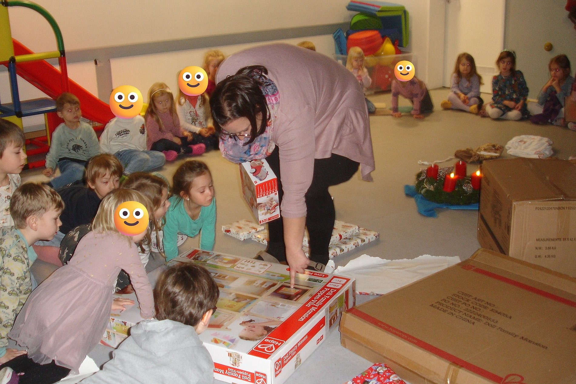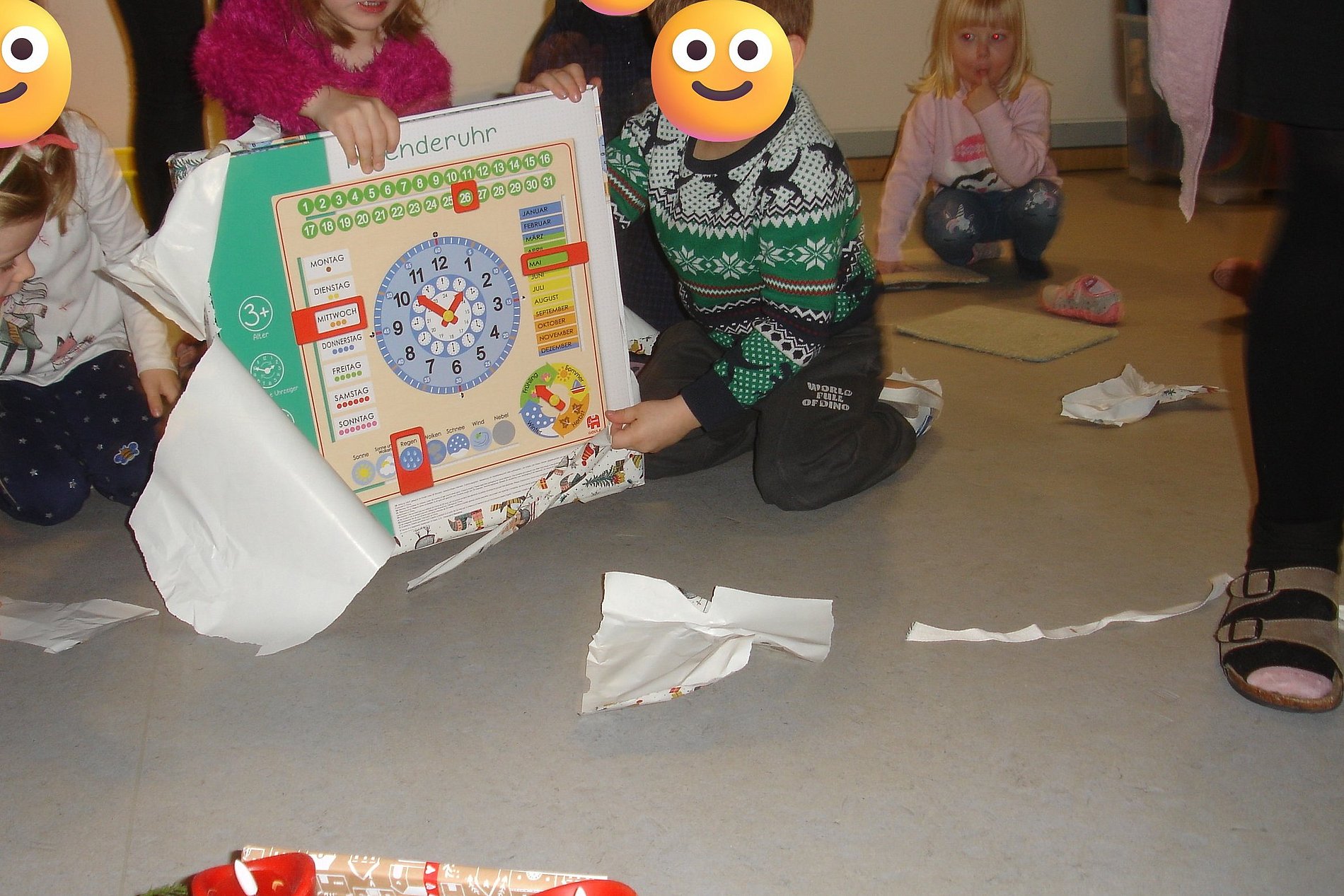 Das Christkind hatte unseren Wunschzettel der Kita-Gruppen tatsächlich schon gelesen und hatte unserem Förderverein schon Geschenke gebracht, welche die Kinder während einer Weihnachtsfeier in der Turnhalle bereits öffnen durften.