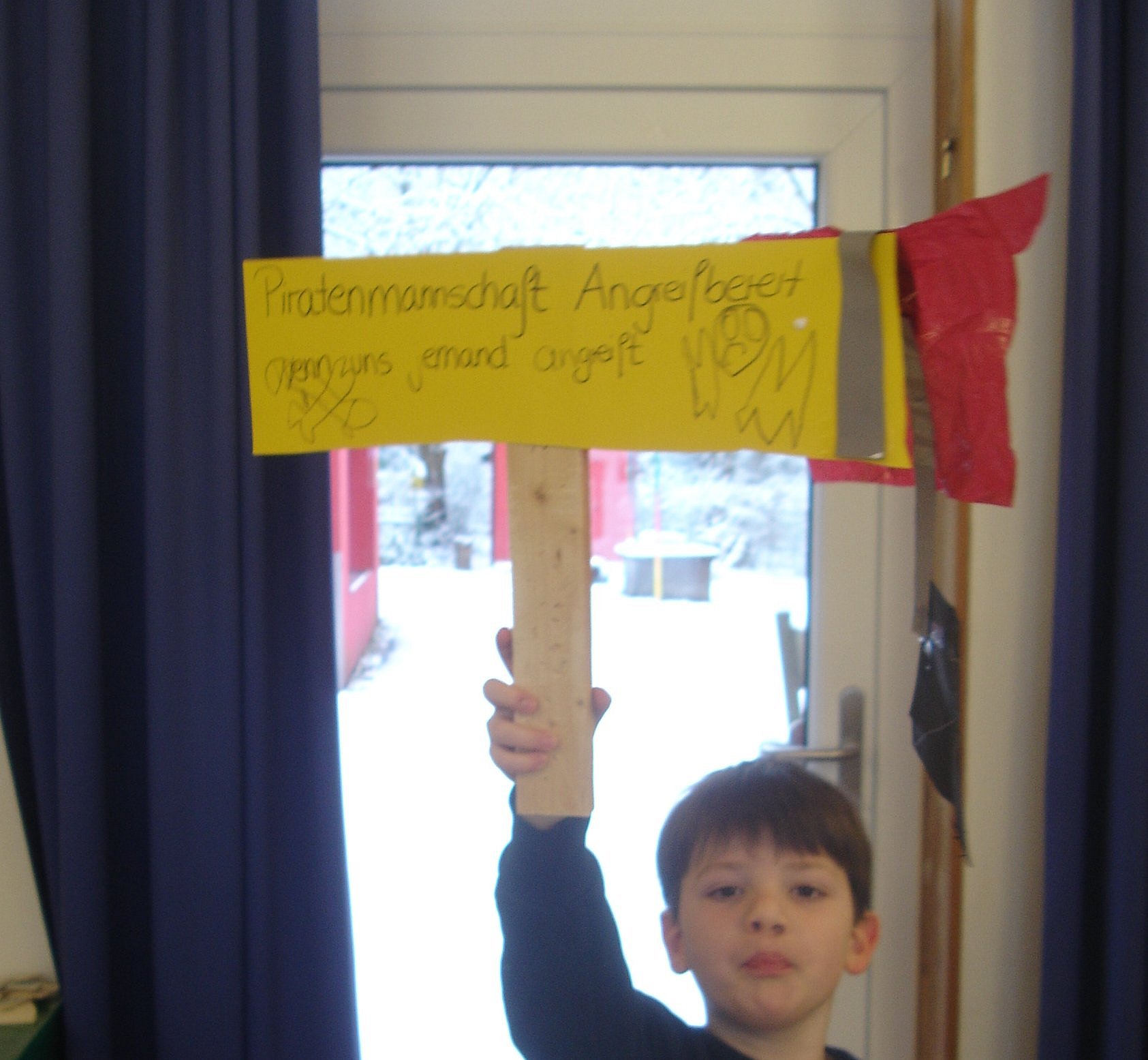 Es entstanden immer mehr Ideen. Die einen bauten ein Steuerbord, die anderen eine Flagge, eine Schriftrolle und natürlich durfte auch das Kanonenrohr und eine Schatzkarte nicht fehlen.